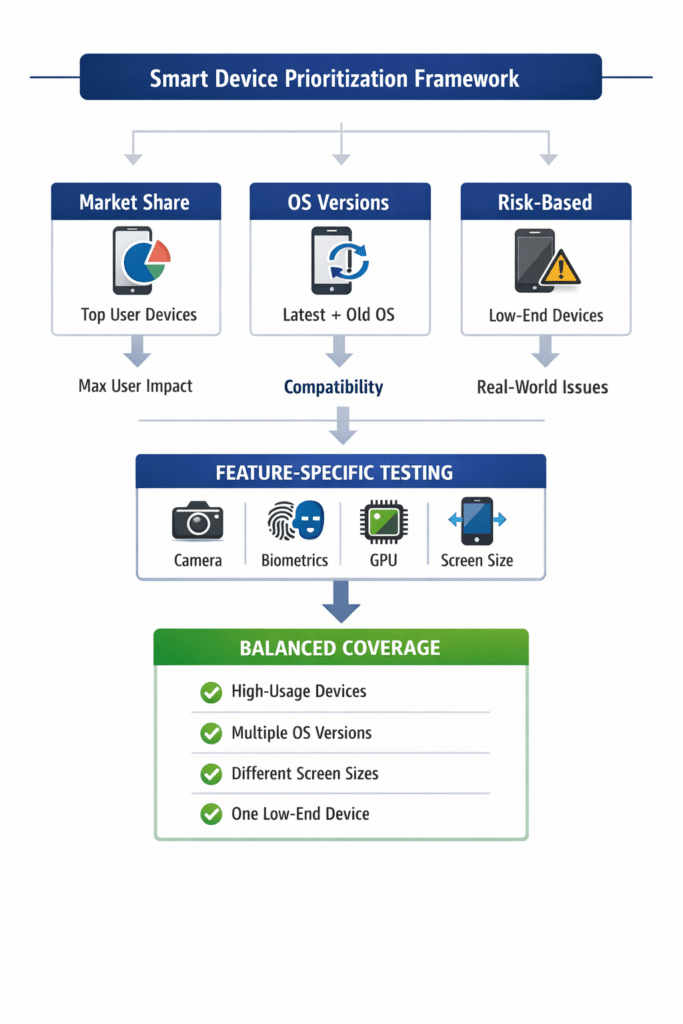 A strong prioritization strategy turns a large device pool into a focused, effective testing system.